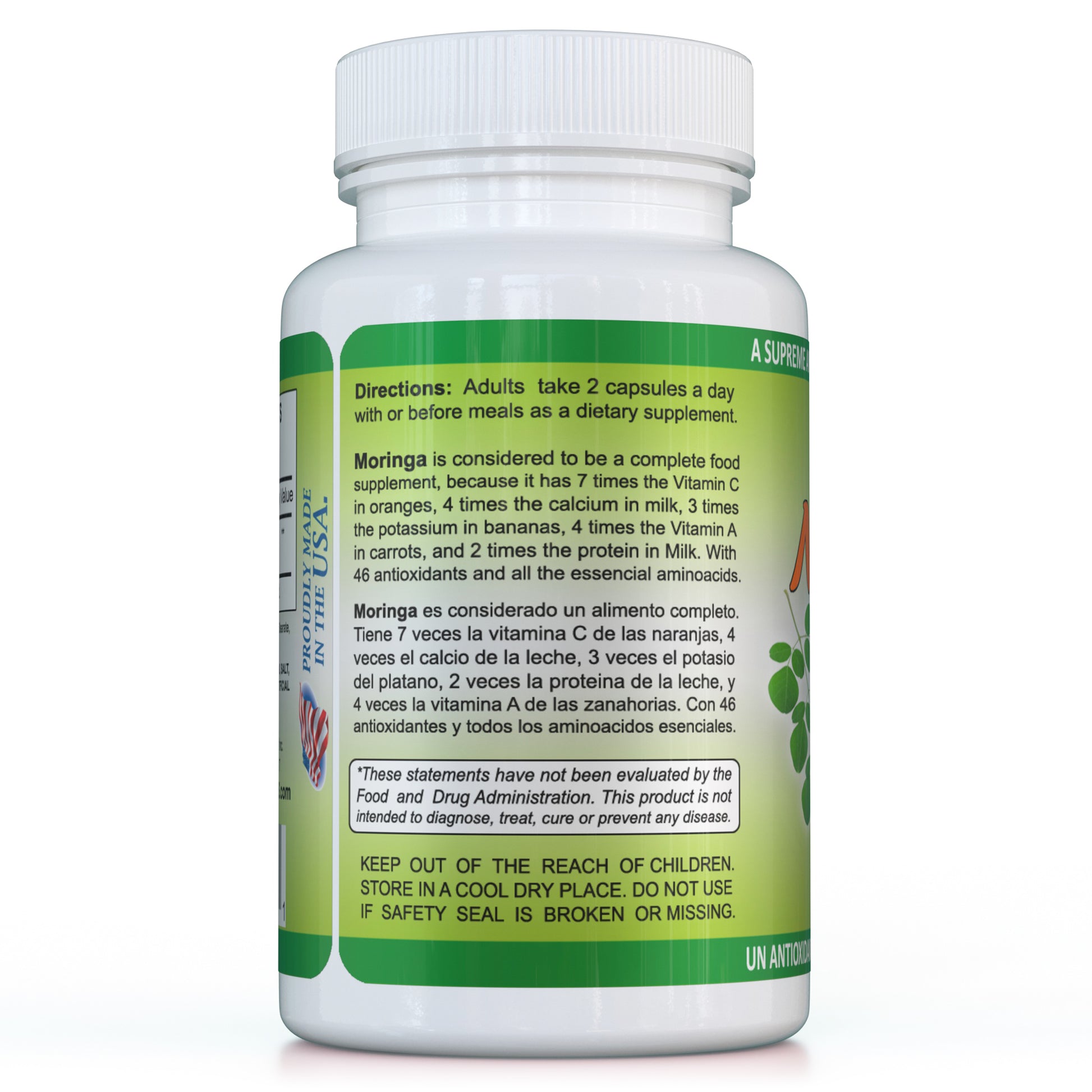 Cada dosis contiene 800 mg de moringa pura, lo que hace que sea fácil y cómodo incorporar esta potente planta a su rutina diaria de bienestar. Con 120 cápsulas por frasco, podrá disfrutar de un apoyo constante basado en la naturaleza y en el que se ha confiado durante generaciones.