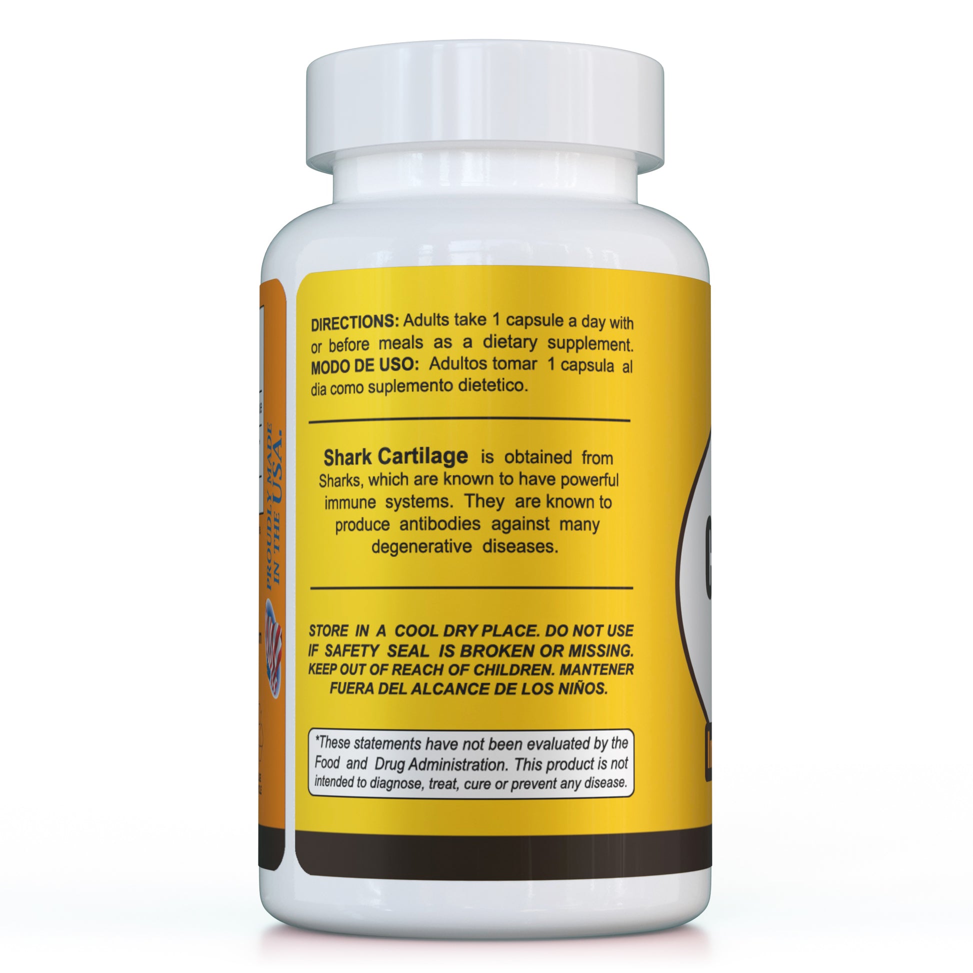 Our Shark Cartilage 750 mg capsules are manufactured and packaged in the USA, delivering a natural source of joint and bone support in every serving.